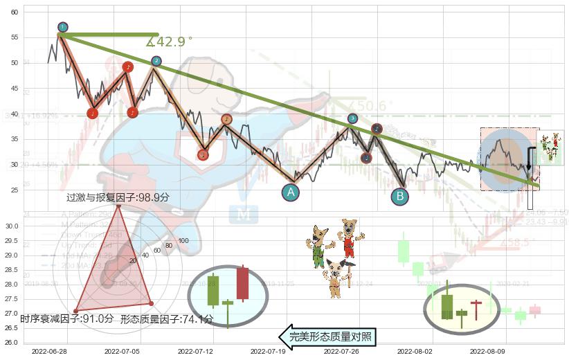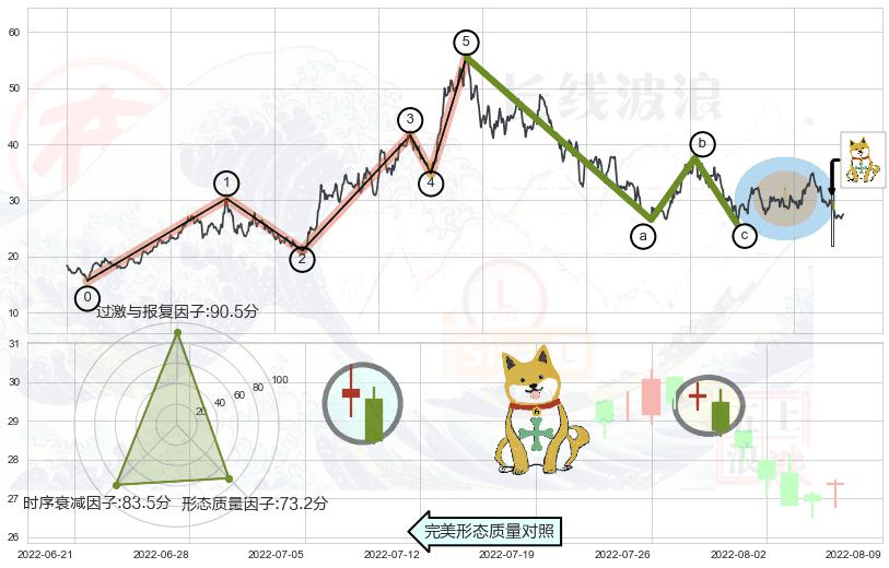 从2022-07-04至2022-08-12,共包含30个交易日,阶段股价下跌-23.01%,阶段股价变动位移路程比: 1 : 2