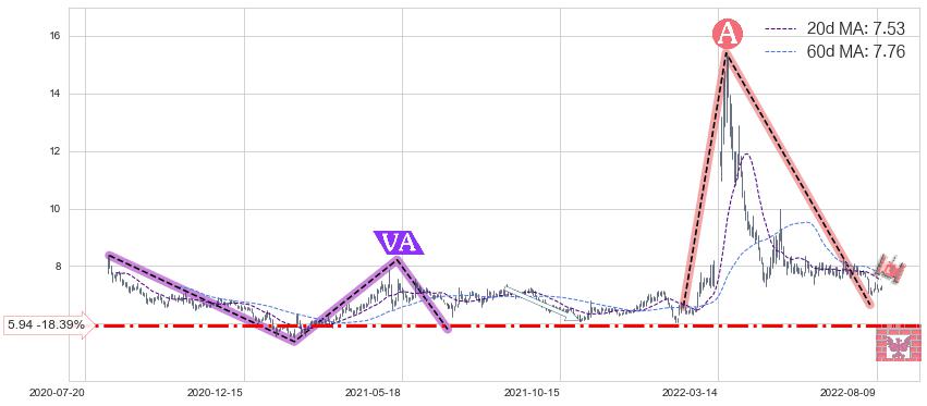 ♞ 20日均线:7.53,60日均线:7.76→ 快线<慢线