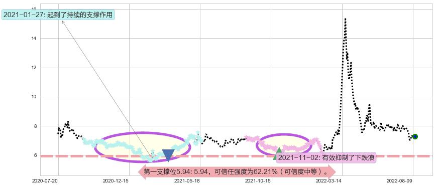 ♘ 支撑价格位5.94,可信任强度62.21%,距离最后交易2022-08-12形成的收盘价格7.28相差 -18.39%