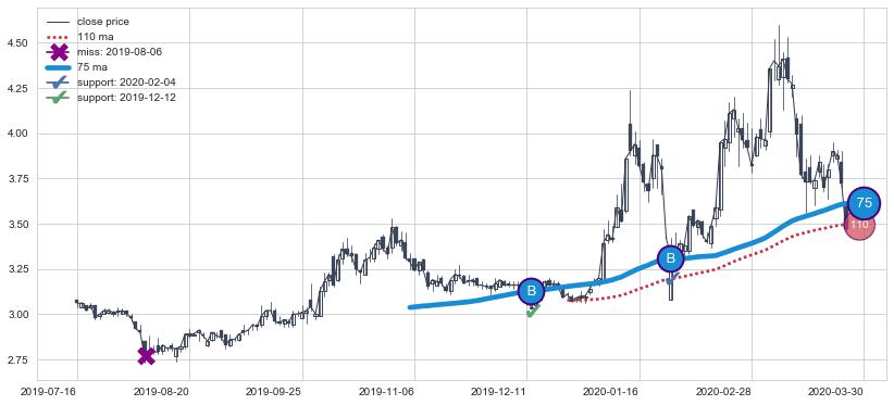 ➢ 最优均线组合共正确确认支撑阻力信号7处,正确确认率 87.50%
