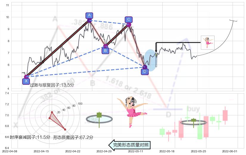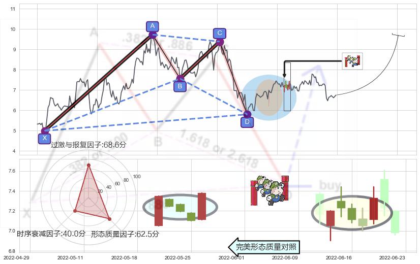 ➢ 曙光初现形态 🔜 谐波蝙蝠d拐点上涨支撑 综合量化分数:52.53 【中性】