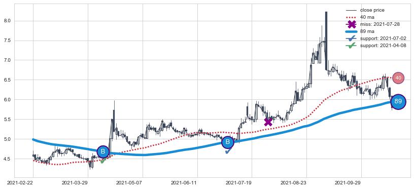 ➣ 89小时均线于(2022-02-23: 6.17)形成【死叉】基于【死叉历史模型】预测死叉后最低波谷价格: 5.58, 死叉后最低价格4.41,已经下跌超出预测最低波谷价格, 预期反弹