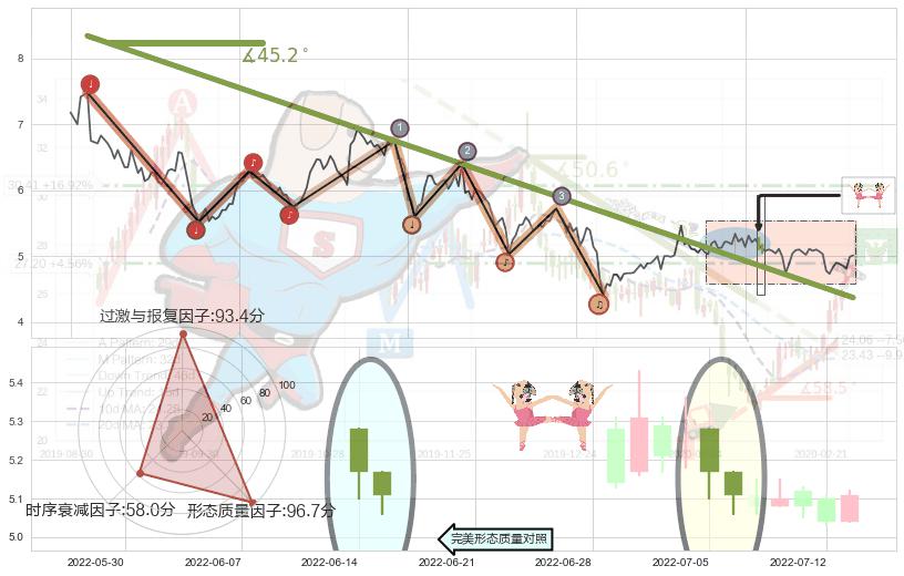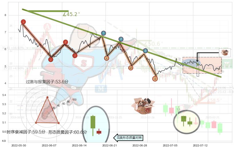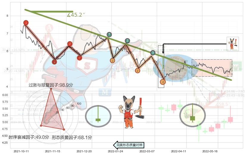 ➣ 2021-09-02-2022-05-31下跌趋势存在反转上涨[机会],其原下跌趋势的阻力位(4.37)已被突破[强支撑信号],原下跌趋势角度: 45.2˚