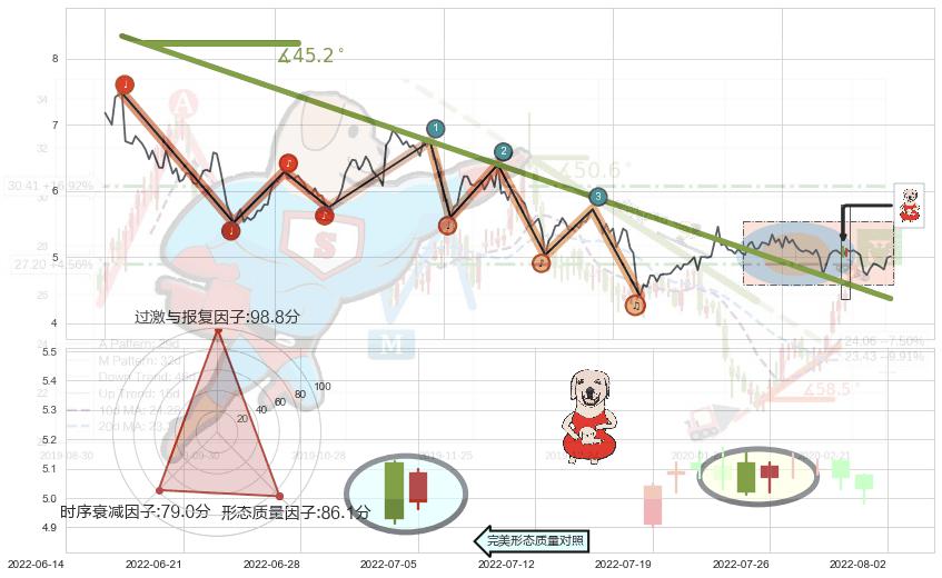 ♘ 阻力价格位5.82,可信任强度75.58%,距离最后交易2022-08-12形成的收盘价格5.01相差 +16.11%