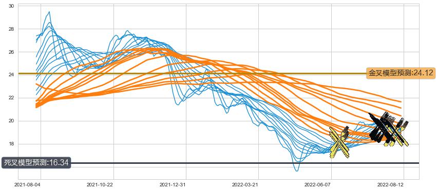 ➢ 30小时均线于(2022-07-22: 19.38)形成【死叉】基于【死叉历史模型】预测死叉后最低波谷价格: 16.58, 死叉后最低价格18.00,尚未达到预测最低波谷价格, 预期继续下跌