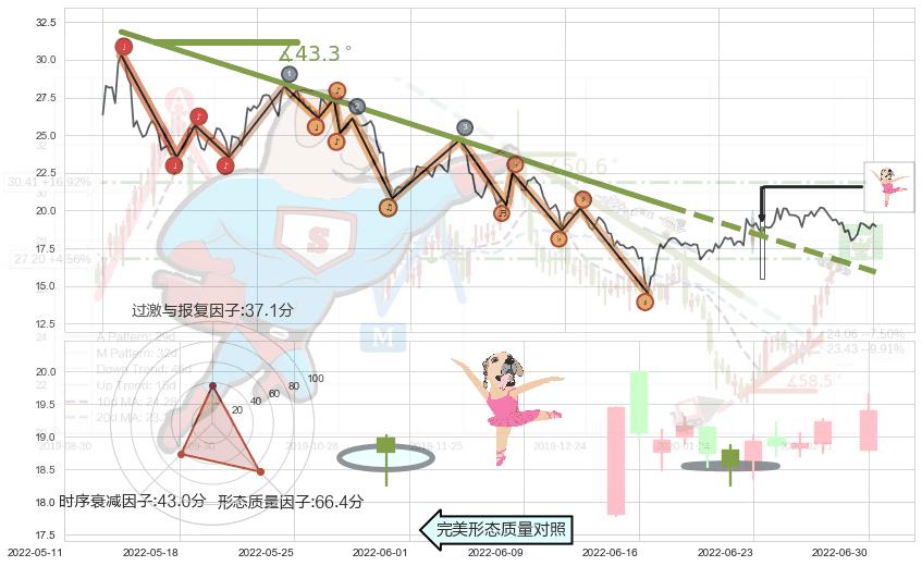 ➢ 2021-08-09-2022-05-09下跌趋势存在反转上涨[机会],其原下跌趋势的阻力位(15.91)已被突破[强支撑信号],原下跌趋势角度: 43.3˚