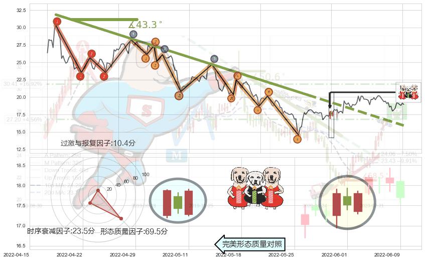 ➣ 2021-08-09-2022-05-09下跌趋势存在反转上涨[机会],其原下跌趋势的阻力位(15.91)已被突破[强支撑信号],原下跌趋势角度: 43.3˚