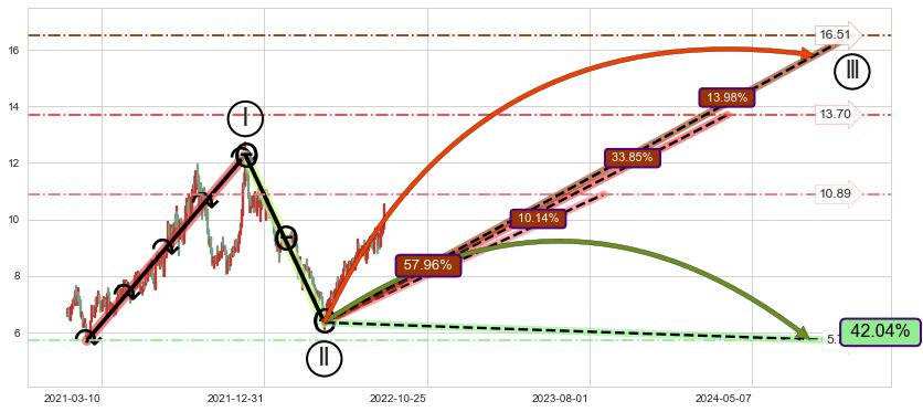 ♘ 支撑价格位6.02,可信任强度98.12%,距离最后交易2022-08-12形成的收盘价格10.07相差 -40.26%