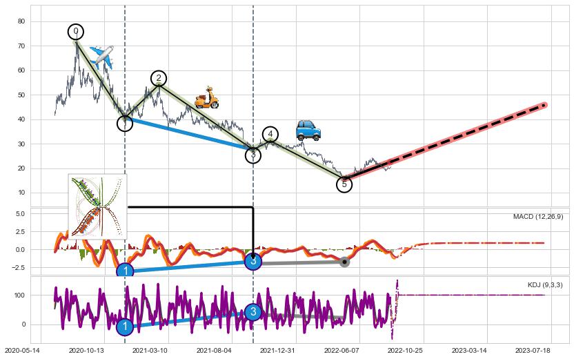 ➣ 波浪理论:猜想止跌 → 上涨 →【拐点】浪5已完成 → 大趋势均值回复