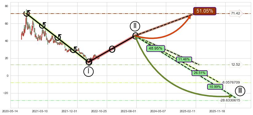 ➢ AI预测: 假定反转如期而至,第❸价格目标位置(2023-06-23, 71.42)