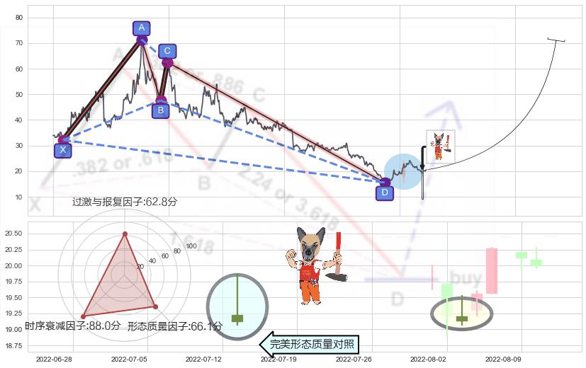 ➢ 上涨螺旋桨形态 + 谐波螃蟹d拐点上涨支撑信号叠加后【反向回撤率】中等,【看多】信号叠加【存续影响中等】