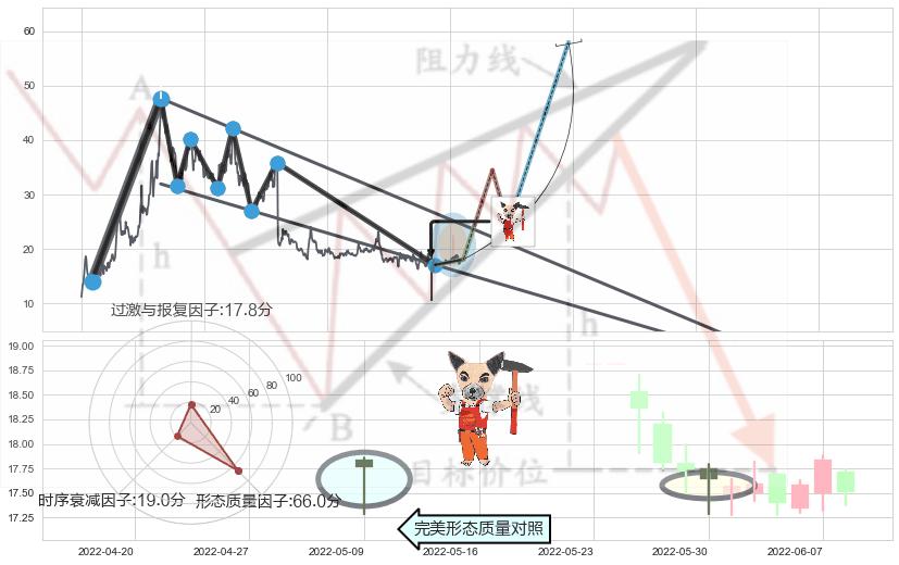 ➢ 看涨(低位)倒锤头线 + 降楔型临近阻力猜想转换支撑上涨信号叠加后【反向回撤率】中等,【看多】信号叠加【存续影响中等】