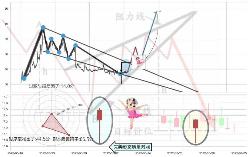 ➢ 早晨之星(黎明之星) 🔜 降楔型临近阻力猜想转换支撑上涨 综合量化分数:59.08 【偏多】