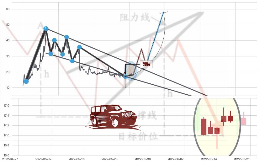 ➢ 收盘价(2022-05-16: 17.14 )→再次回踩→第一根k线高点(2022-04-29: 18.02 )