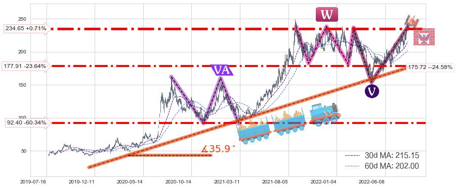 ♘ 支撑价格位177.91,可信任强度83.01%,距离最后交易2022-08-12形成的收盘价格232.99相差 -23.64%