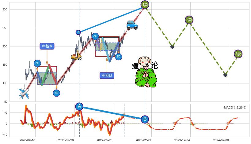 ➣ 上升三部曲(升势三鸦) + 缠论中枢点突破中枢B阻力拉升信号叠加后【目标达成率】中等,【看多】信号叠加【存续影响中等】