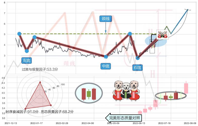 ♘ 支撑价格位4.06,可信任强度79.36%,距离最后交易2022-08-12形成的收盘价格4.37相差 -7.11%
