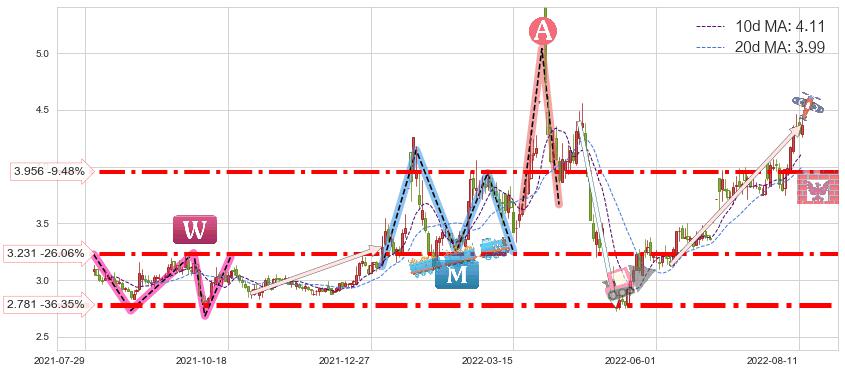 ♘ 支撑价格位3.231,可信任强度70.10%,距离最后交易2022-08-12形成的收盘价格4.37相差 -26.06%