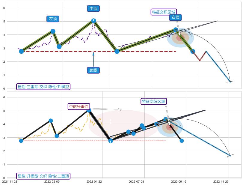➣ 【未确认突破,预测即将形成突破】三重顶起点:2021-11-29, 预测突破点:2022-09-08,形态共191交易日
