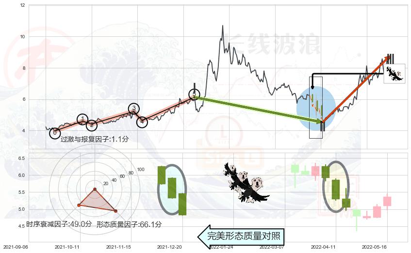 ➢ 🕰 价格走势在2022-04-25至2022-05-05期间形成底部尽头线(上山虎),残存影响值:1.44