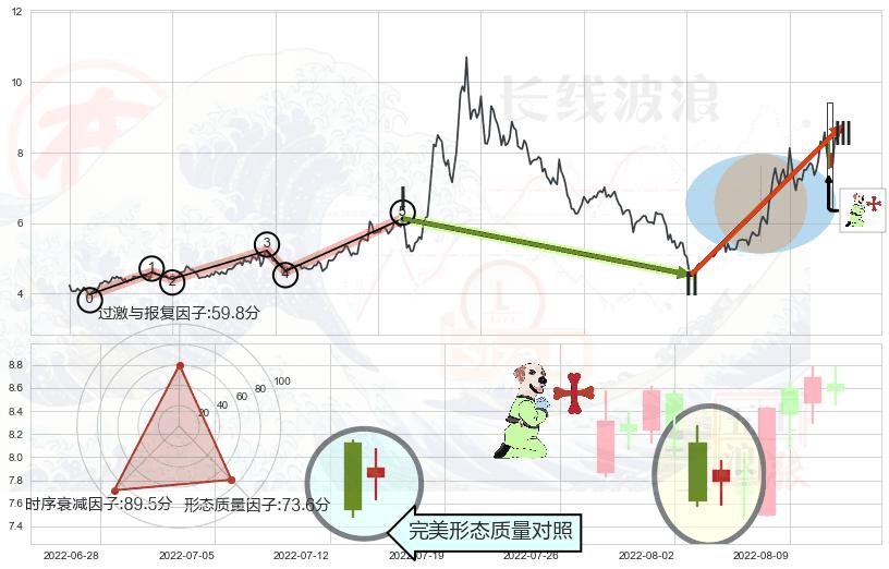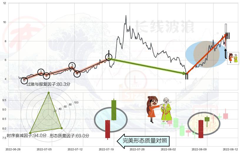 ➢ 🕰 价格走势在2022-08-10至2022-08-12期间形成两红夹一黑,残存影响值:5.59