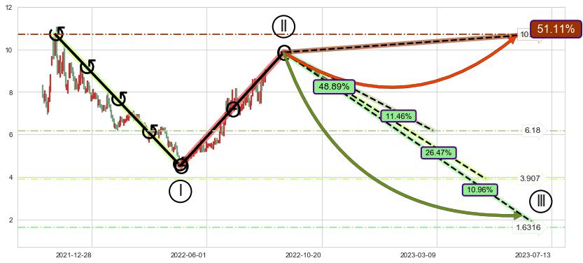 ➣ c.1: 当前c浪回调位置(2022-08-12, 8.80),仍然有回调空间