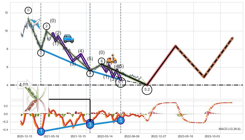 ➣ 5.1: 预测当前第5浪位置(2022-04-26, 4.62),仍然有下跌空间
