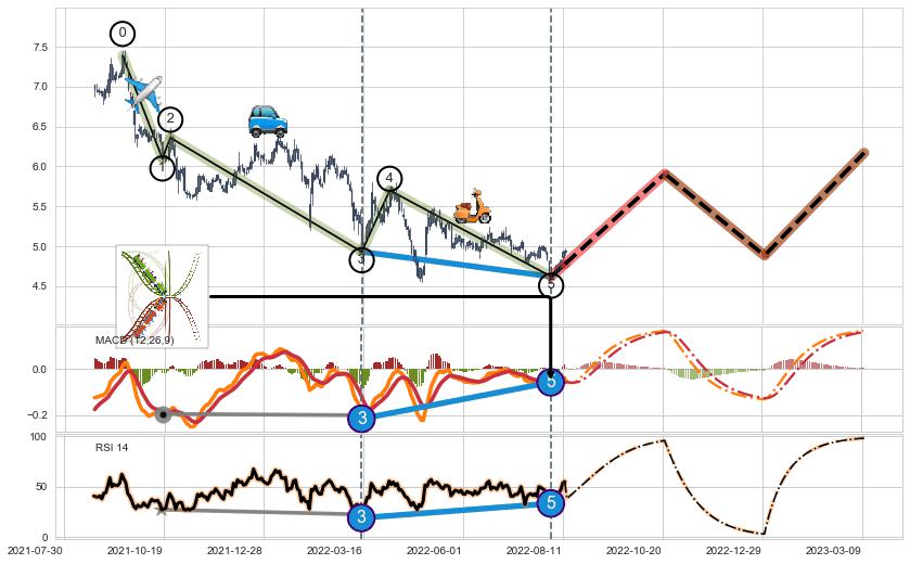➣ AI预测: 假定反转启动后, 第❸目标位置(2023-03-08, 4.62)