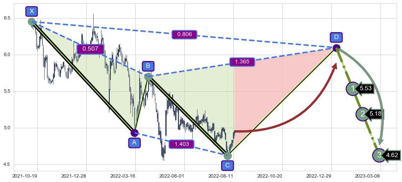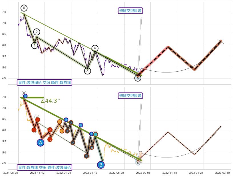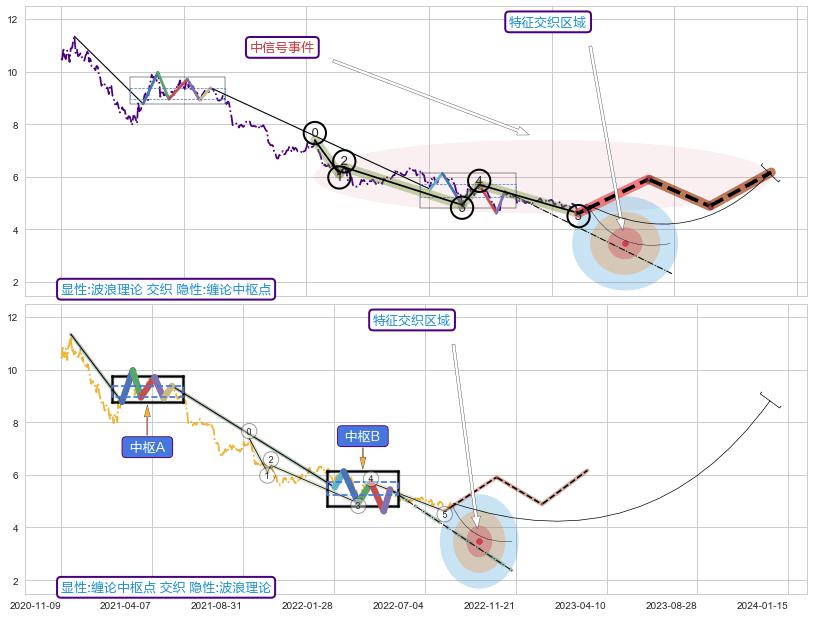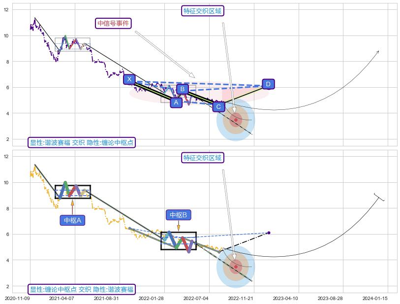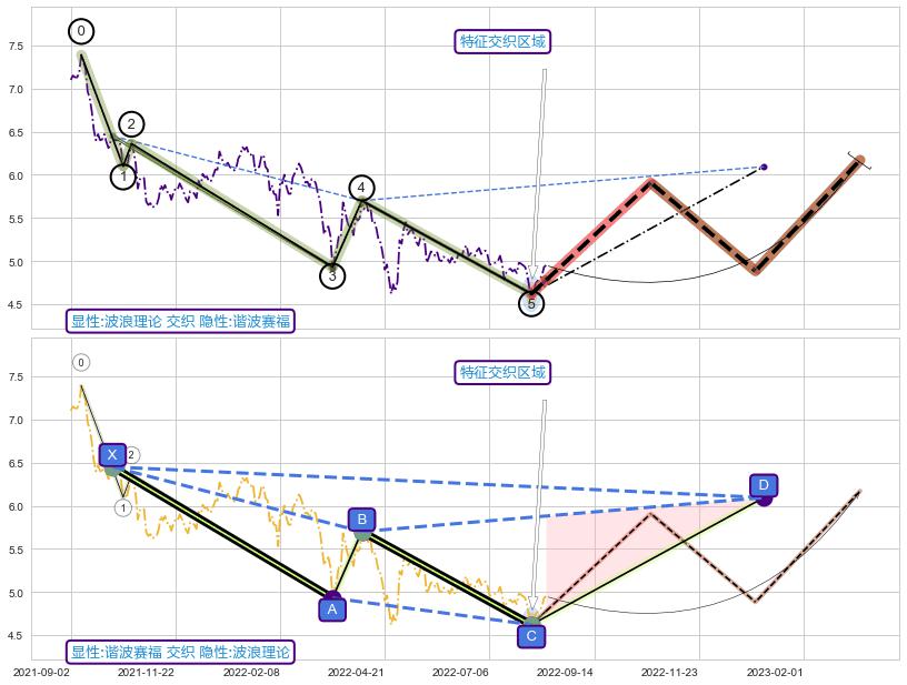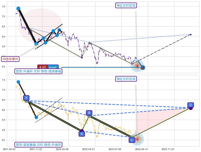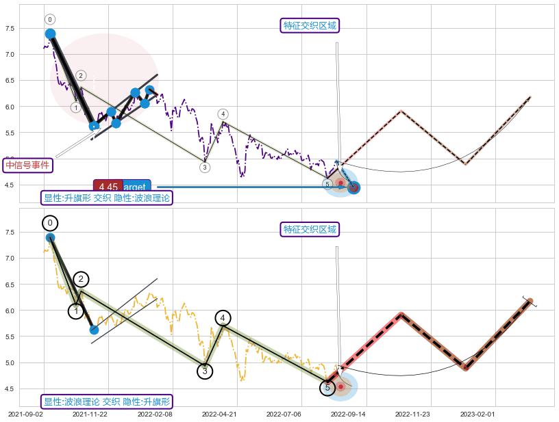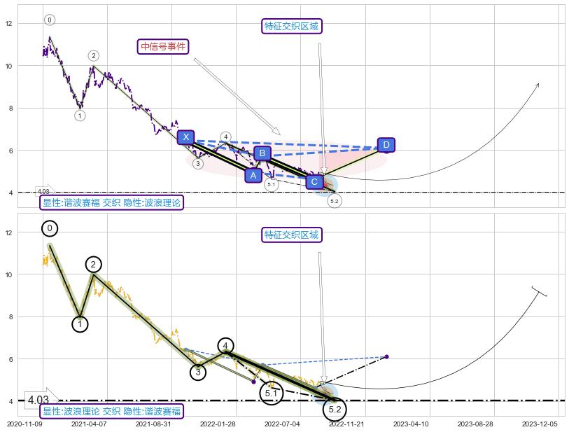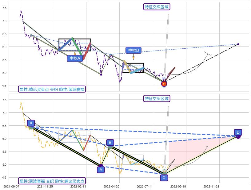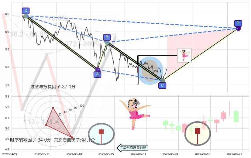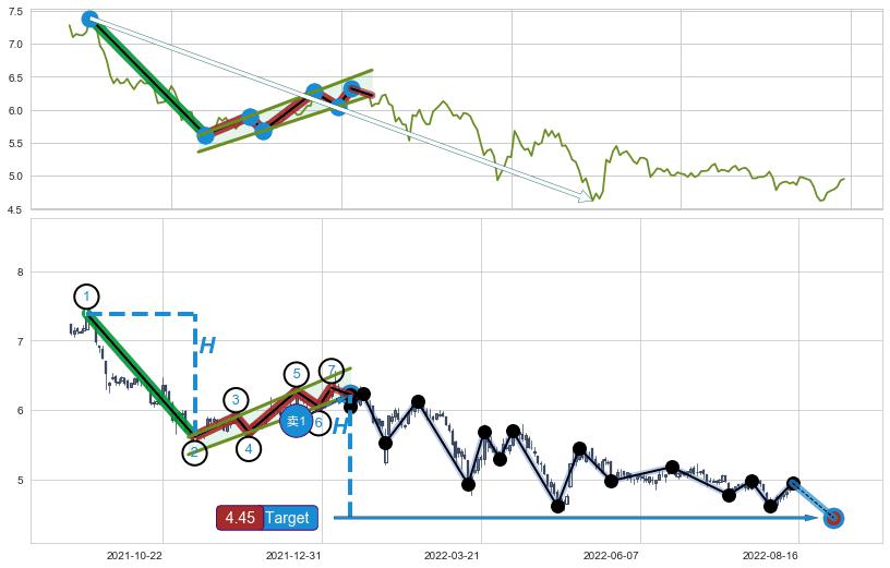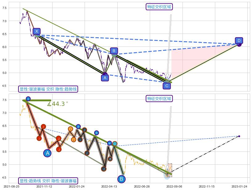 ➣ D点拟合预测价格6.09,距离最后交易收盘价格4.95相差 +23.12%