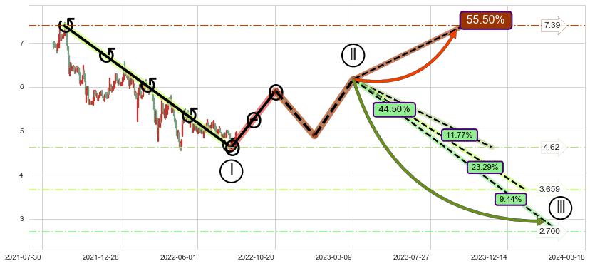 ➣ AI预测: 假定反转启动后, 第❶目标位置(2023-01-30, 5.53)