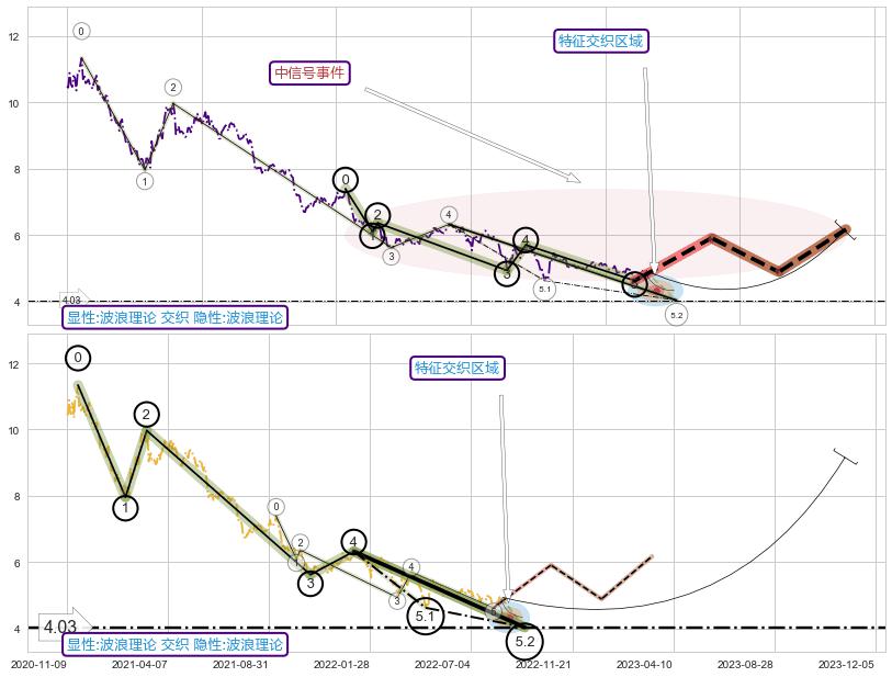 ➢ 循环浪继续向下【最高】位置(2023-11-16, 4.62),匹配聚类样本比例26.46%, 可能性概率11.77%