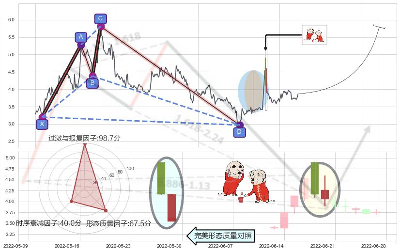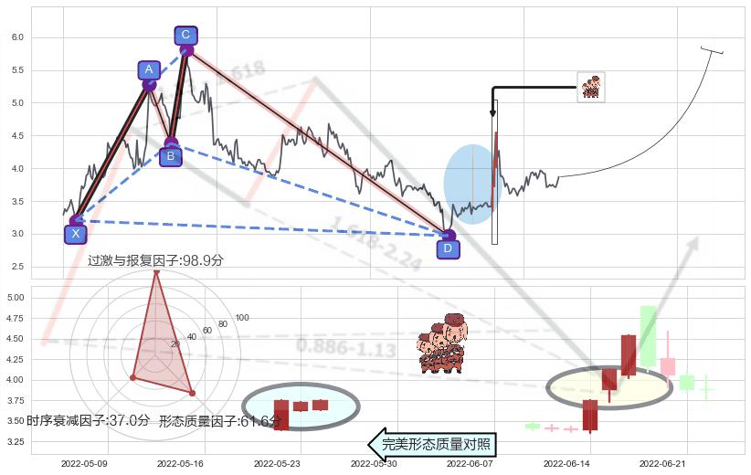 ➢ 上涨螺旋桨形态 🔜 谐波鲨鱼d拐点上涨支撑 综合量化分数:52.58 【中性】