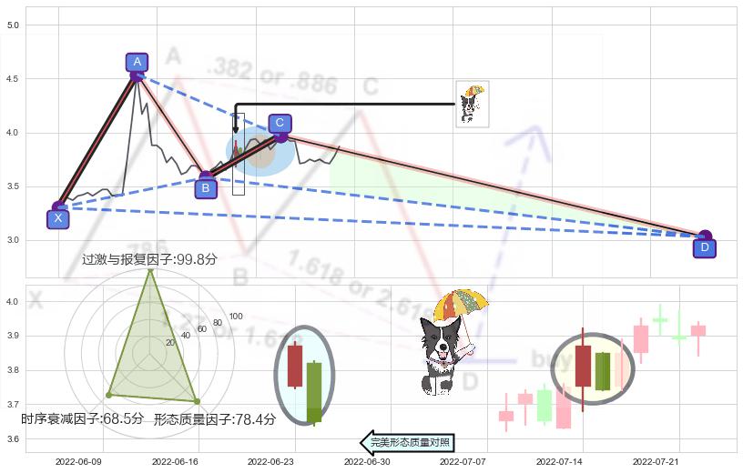 ➣ 未完成【蝴蝶】形态起点X: 2022-05-24, 已到达C点: 2022-07-27, 预测最终D点: 2022-11-24, 共130交易日