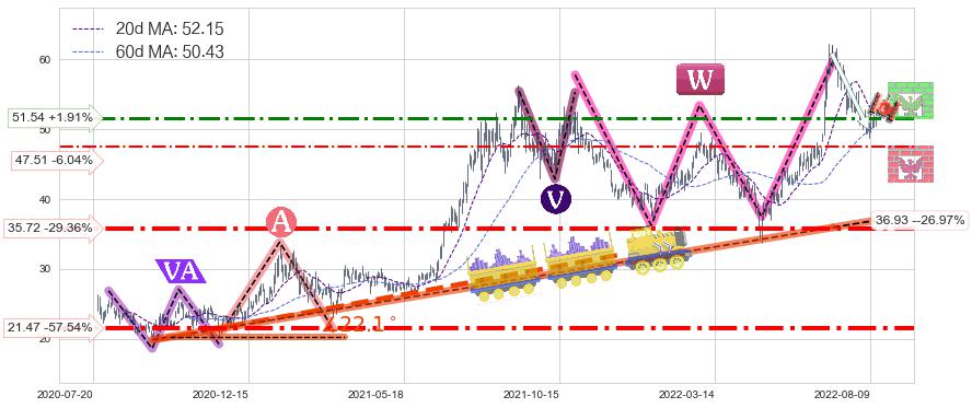 ♘ 阻力价格位51.54,可信任强度67.47%,距离最后交易2022-08-12形成的收盘价格50.57相差 +1.91%