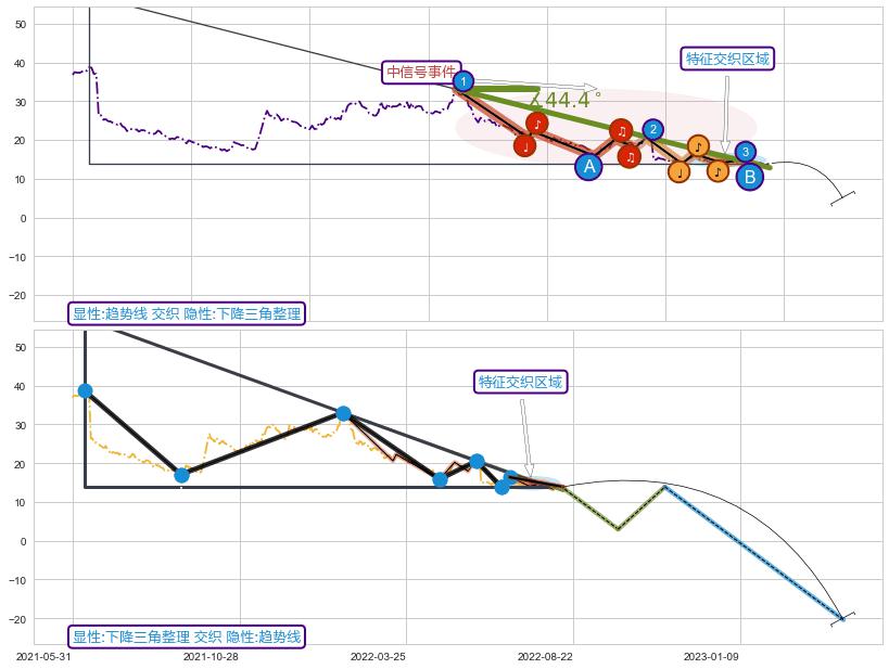 ➢ 趋势线属【中级别信号事件】下降三角整理属【长级别信号事件】中长周期组合信号事件,中长事件长度比49.61%