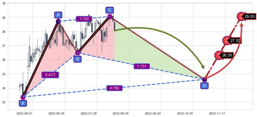 ➣ 未完成【赛福】形态起点X: 2022-05-24, 已到达C点: 2022-08-09, 预测最终D点: 2022-10-31, 共114交易日