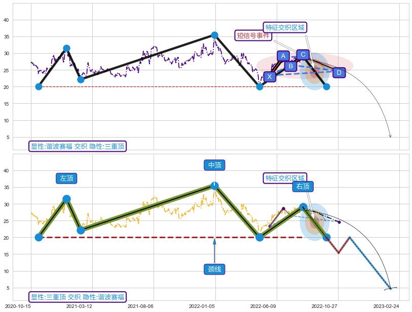 ➢ 谐波赛福属【短级别信号事件】三重顶属【长级别信号事件】长短周期组合信号事件, 短长事件长度比13.33%