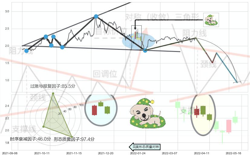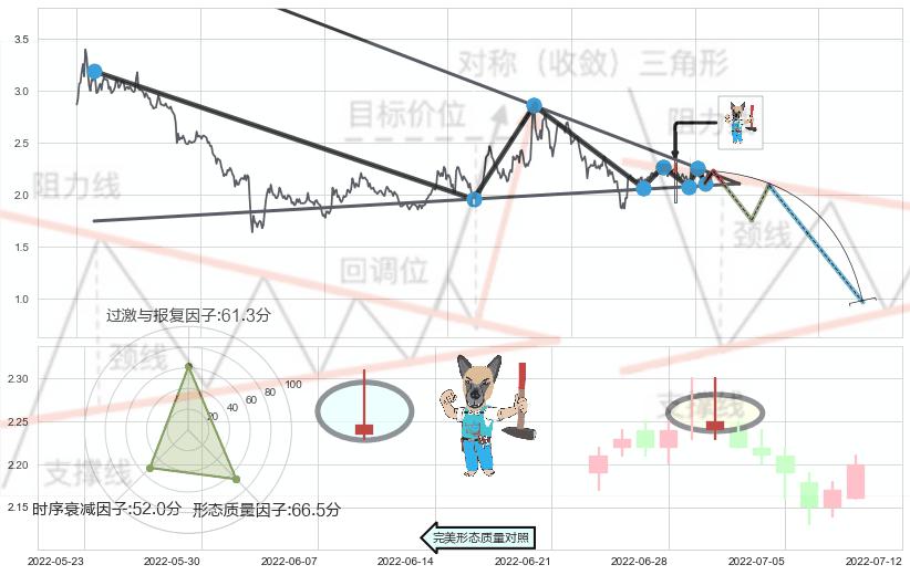 ➣ AI智能: 预测【多空区域上下窄幅震动→价格波动日益狭窄→空方占优】对称三角形中继整理向下突破,预测将在2022-08-03突破颈线, 演变成下降通道