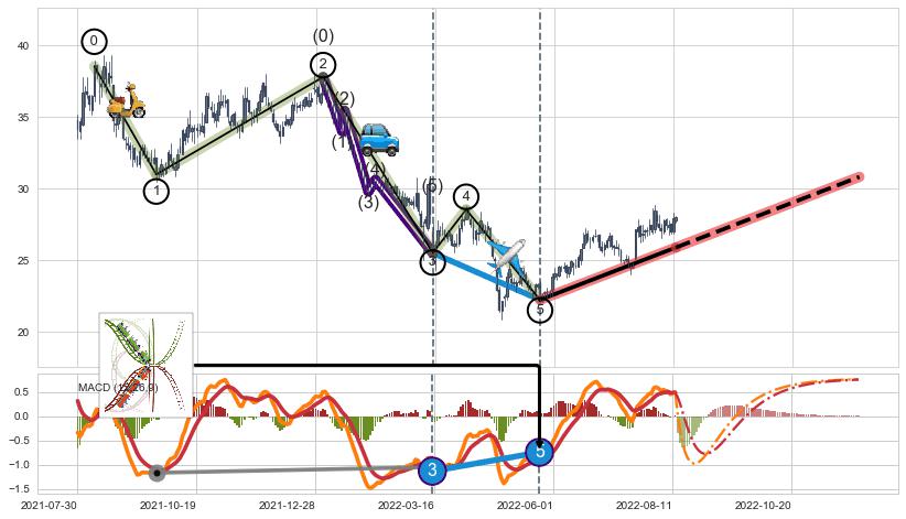 ➢ 波浪理论:猜想止跌 → 上涨 →【拐点】浪5已完成 → 大趋势均值回复