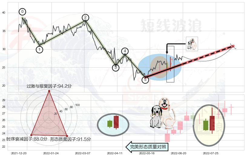 ➢ 阳包阴形态 🔜 波浪理论下跌浪:浪5反弹拐点 综合量化分数:54.13 【偏多】