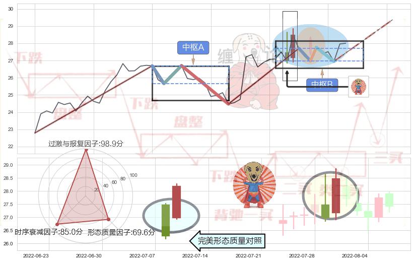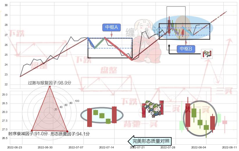 ➢ 【中枢B】:2022-08-02-2022-08-10,中枢由4笔构成,共7交易日, ZG=27.70, ZD=26.98