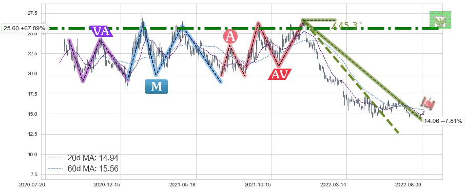 ♘ 阻力价格位25.60,可信任强度99.24%,距离最后交易2022-08-12形成的收盘价格15.25相差 +67.89%