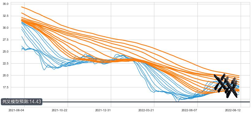 📉 多条均线基于【死叉历史模型】预测最低波谷价格的平均值: 14.43