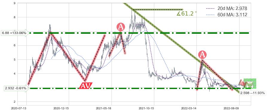 ♘ 阻力价格位2.932,可信任强度71.74%,距离最后交易2022-08-12形成的收盘价格2.950相差 -0.61%