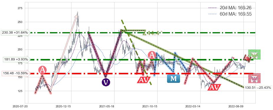 ♘ 阻力价格位181.89,可信任强度87.25%,距离最后交易2022-08-12形成的收盘价格175.01相差 +3.93%