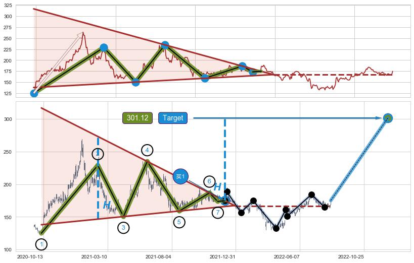 ➣ 【已确认突破】最后价格:175.01与最小【整理】第一目标价格→(2022-12-15: 301.12 )相较: 上涨空间【较大】