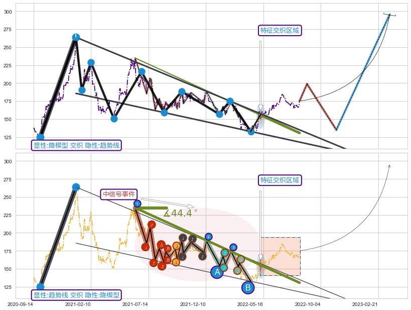 ➢ 趋势线属【中级别信号事件】降楔型属【长级别信号事件】中长周期组合信号事件,中长事件长度比56.88%