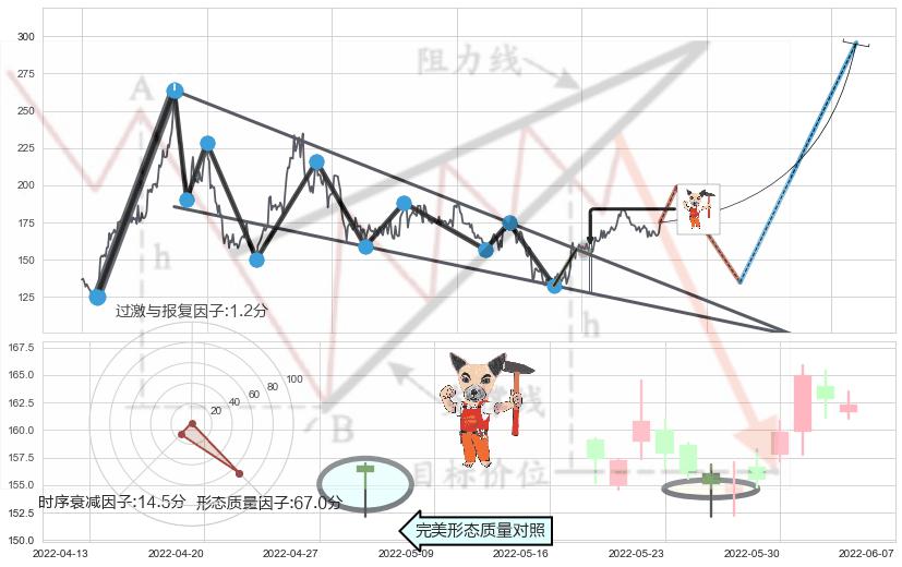 ➢ 【买1】: 激进型 买点 →(2022-05-10: 157.02 )形成突破降🚩楔型【整理】形态