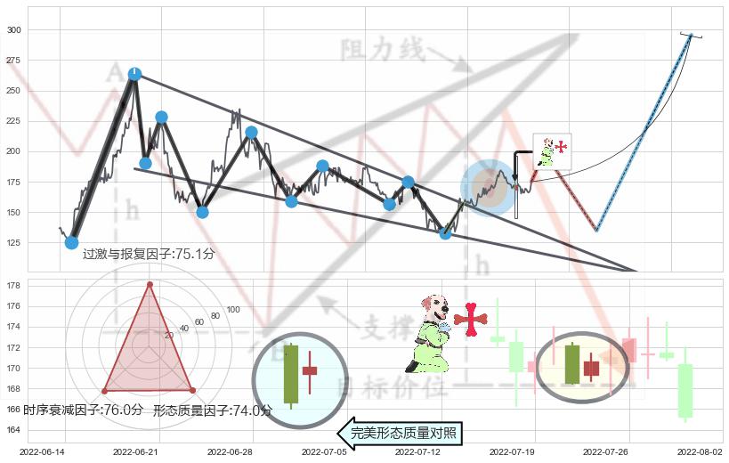 ➢ 【卖1】: 激进型 卖点→(2021-12-22: 174.29 )形成突破升🚩楔型【整理】形态