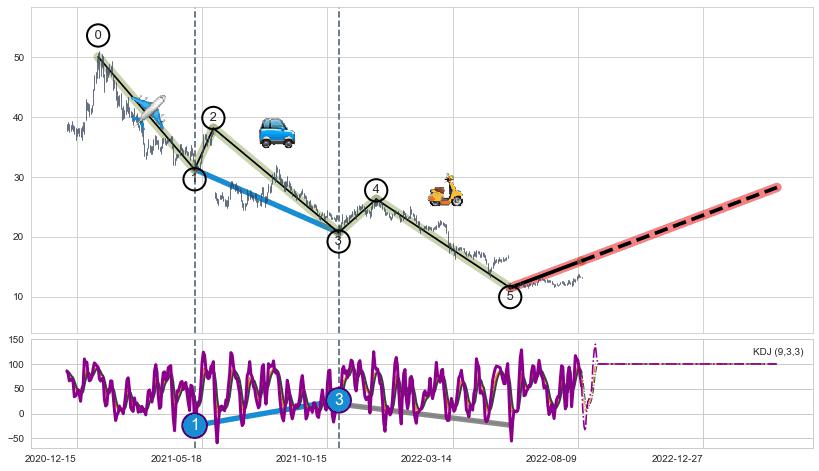 ➣ 波浪理论:猜想止跌 → 上涨 →【拐点】浪5已完成 → 大趋势均值回复